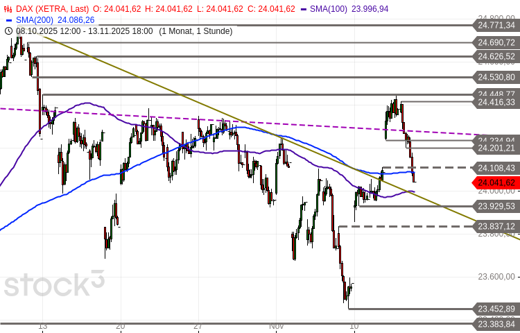 Der DAX stand gestern unter Druck und rutschte schwungvoll bis auf ein in der letzten Handelsstunde verbuchtes 2-Tages-Tief bei 24.041 Punkten.